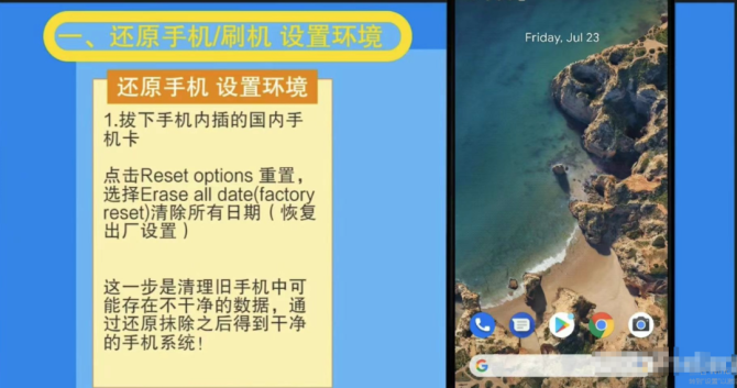 1、拨下手机内插对的国内手机卡,点击Reset opztions重置,选择Erase all date,清除所有日期,恢复出厂设置。这一步是清理旧手机中可能存在不干净的数据,通过还原抹除之后得到干净的手机系统。