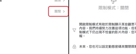 当你回到主页面,顶端就是提示进入限制模式,在此模式下将会自动排除可能不恰当的影片内容。