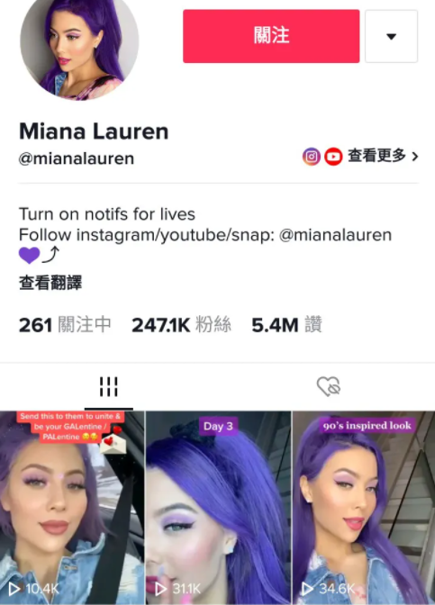 接下我们看看一些比较专业的美妆类的大博主,这类博主极大可能是从YouTube或者INS过来的。