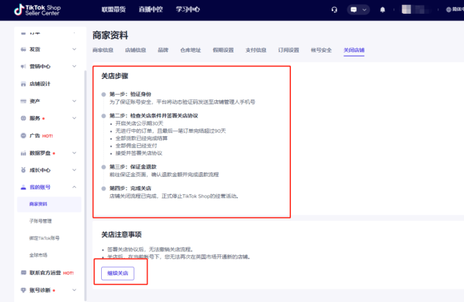 2TikTok Shop店铺关闭流程