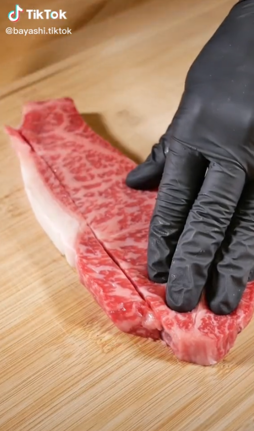 拥有3250万粉丝的日本美食博主“バヤシ?Bayashi”的视频内容更加简洁,一副黑手套、砧板、食材就位即可开始拍摄,视频中几乎听不到博主说一句话,只有此起彼伏的切菜声和BGM作伴。